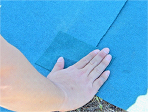 ⑤打ち込んだピンの上から押さえピン上部用粘着シートを張り付けてピン留めは完了です。
