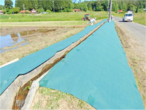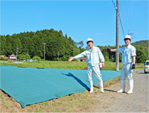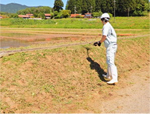 ①はるん田゛の敷設する箇所の草刈りをいたします。